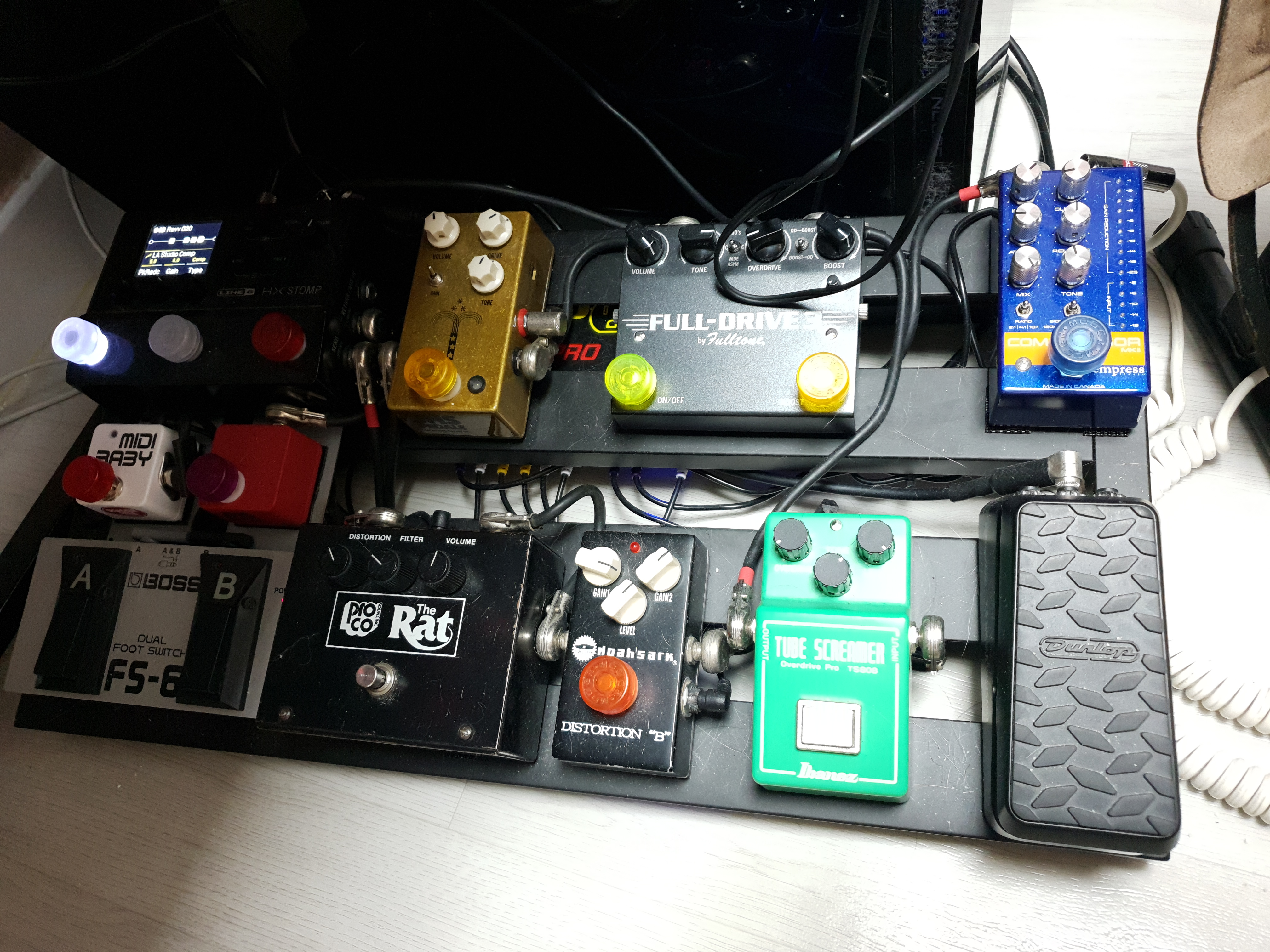마지막으로는 파워다. HX 스톰프는 9v 3A 의 어댑터를 제공한다. 크기도 크거니와 페달 파워로 어찌어찌 컨버터를 이용하고 2 소켓을 이용하여 연결한다고 하지만 접근성이 떨어지는 건 사실이다. 800~900 mA을 사용하는 HX 스톰프에 맞게 스위칭해 주고 관련 케이블도 제공하는 Truetone CS 시리즈는 그나마 간편히 연결이 가능하지만, 그 외의 파워들은 파워 채널 고민이나 구조 구성에 일단 고민을 할 수밖에 없다.